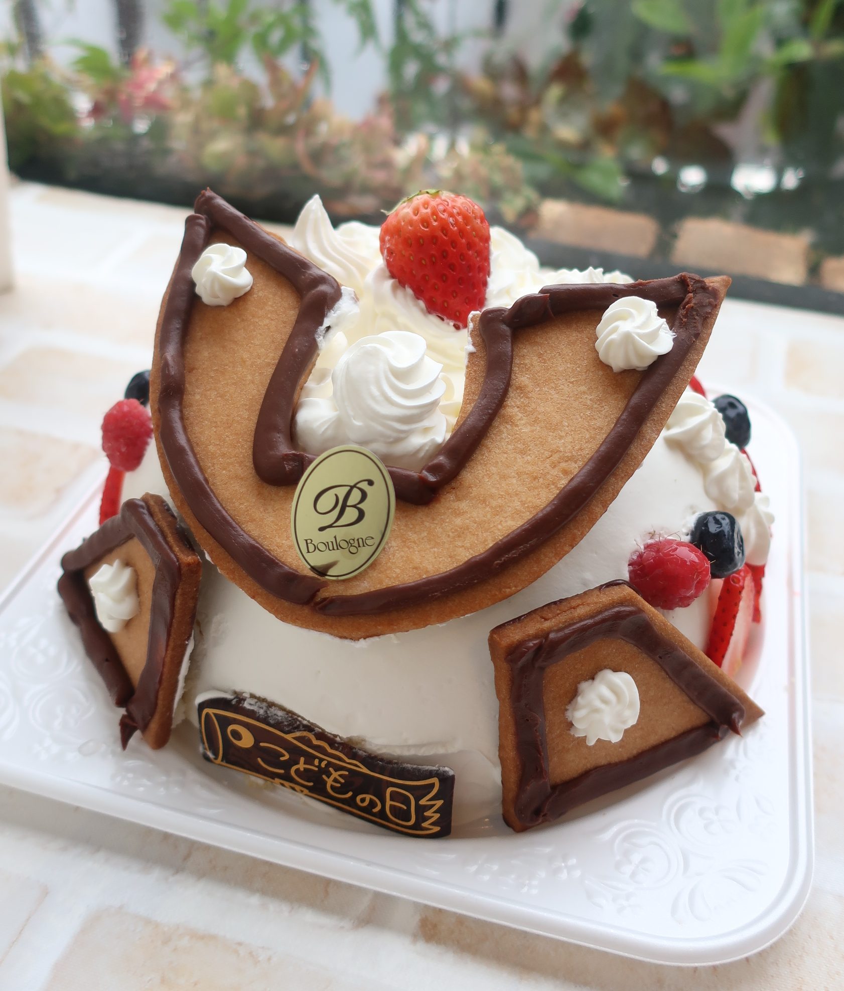 子どもの日のかぶとケーキ 今年は生クリームバージョン(中はフルーツいっぱい)のかぶとが出ました どちらも大きさは6号サイズ ¥4000(税別)